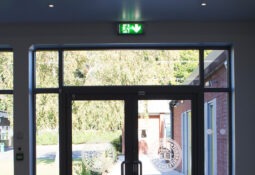 Here, you can find the products used in the emergency section of the project. Their installation meant that the sports hall is not only able to direct occupants to the exits but also light the way should the mains power be lost.